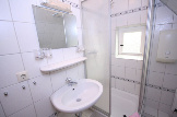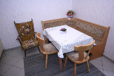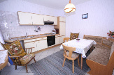 Unsere Ferienwohnung 14 befindet sich im Erdgeschoß und hat eine Größe von ca. 55 qm. Sie besitzt ein Wohnzimmer, eine große Küche mit Esstisch, ein Elternschlafzimmer, ein zweites Schlafzimmer mit zwei Betten und Kinderbett sowie ein Bad mit Dusche und WC. Parkplätze direkt am Haus. Die Küche befindet sich im Erdgeschoß, der Rest befindet sich im 1. Stock.
