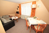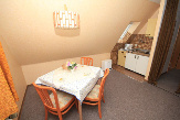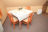 Unsere Ferienwohnungen befinden sich im 2. Obergeschoß und haben eine Größe von ca. 41 qm. Alle Wohnungn sind fast identisch eingerichtet und unterscheiden sich zum Teil nur von den Möbeln. Jede Wohnung besitzt eine Wohnküche mit Eßtisch, ein Schlafzimmer sowie ein Bad mit Dusche und WC. Parkplätze direkt am Haus.
